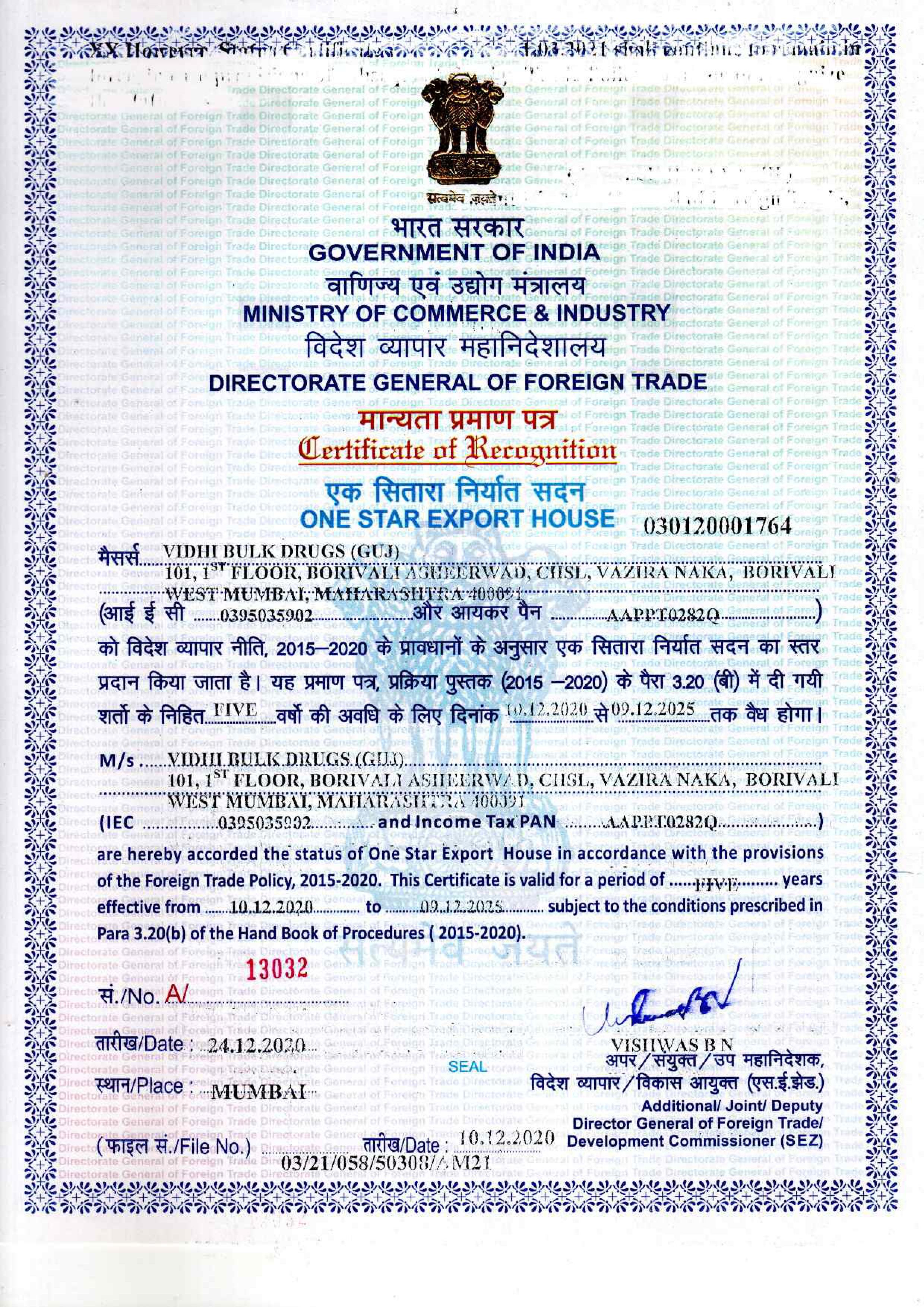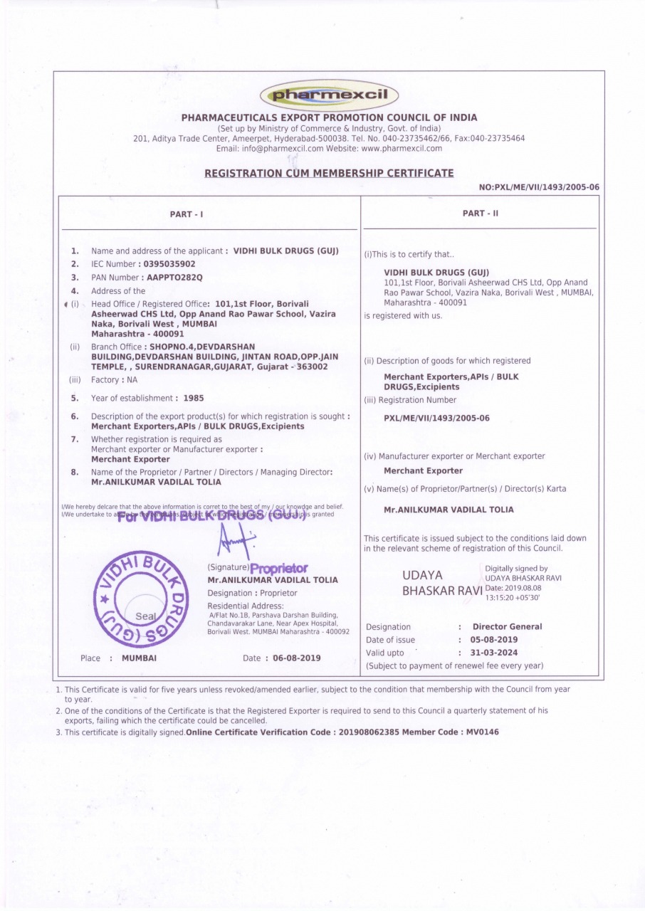PHARMEXCIL CERTIFICATE